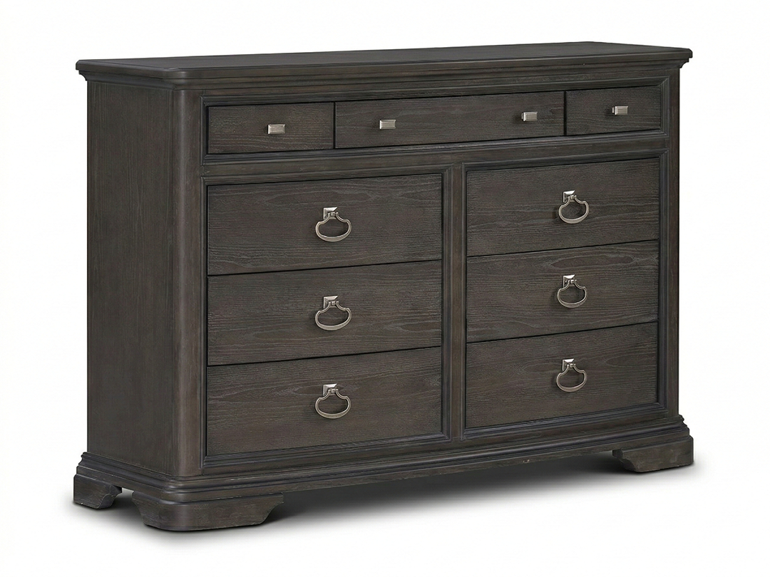 9-Drawer Dresser: 64"W x 19"D x 37"H