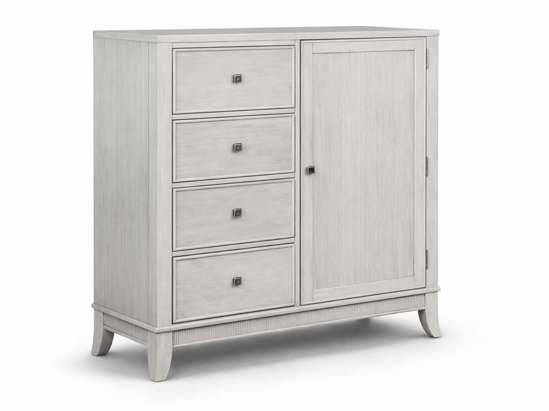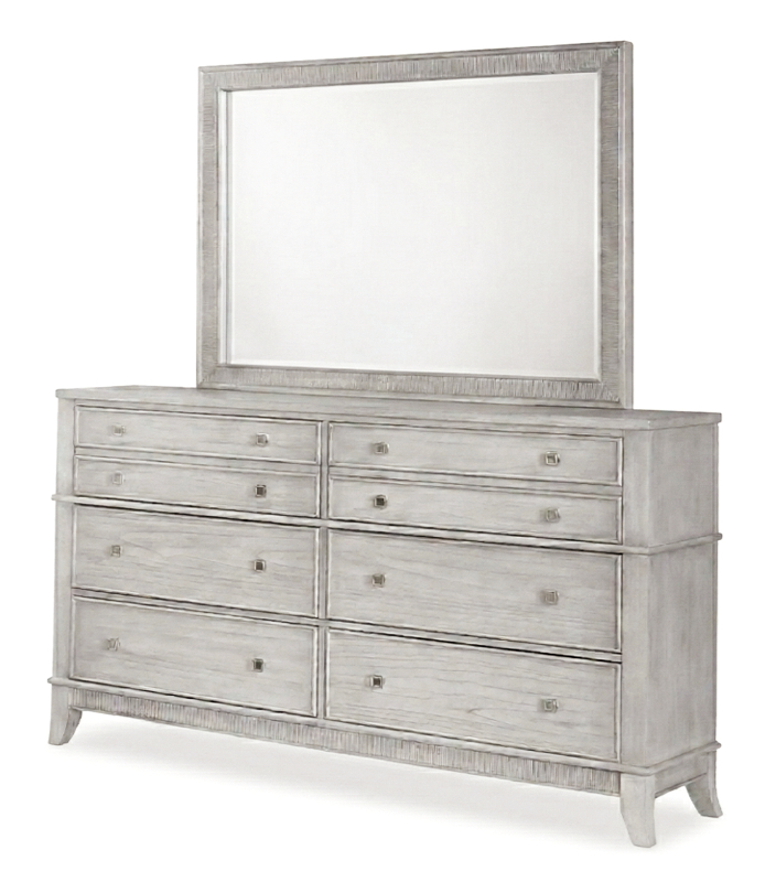The pale brushed finish pairs beautifully with layered bedding in ivory, grey, soft taupe or muted coastal hues, making the collection perfectly suited to contemporary, transitional and coastal-inspired interiors. Ideal for master suites, tranquil guest rooms or refined vacation homes, the full bedroom suite creates a restful retreat that blends comfort with timeless design.
